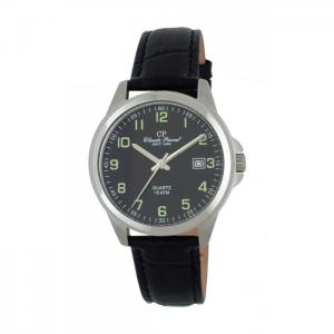 Beschreibung: Claude Pascal Quarz Herrenuhr, Lederband, Edelstahl, Mineralglas