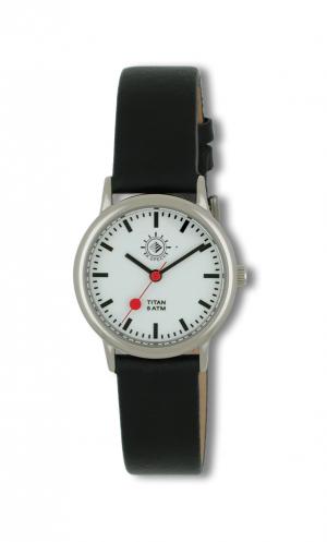 Carlsruher Sonnenuhren Bahnograph T D Quarz Damenuhr, Lederband, Titan, Mineralglas